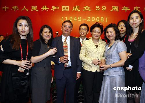 9月29日,國務(wù)院僑辦和中國海外交流協(xié)會舉行招待午宴,歡迎來京參加國慶59周年活動的華人華僑代表,國務(wù)院僑辦主任李海峰致祝酒辭。中新社發(fā) 杜洋 攝