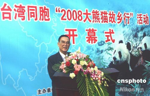 10月8日,臺灣同胞“2008大熊貓故鄉行”活動在成都大熊貓繁育基地啟動,臺灣知名人士林仙保先生一行50余人專程從臺灣到四川參加。這次活動將進一步加強四川省與臺灣南部地區的交流與合作。圖為林仙保先生在開幕式上致辭。中新社發 黃永莉 攝