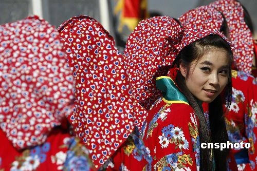 10月14日,第三屆中國荀子文化節在山西安澤舉辦。圖為參加文藝演出的女孩。中新社發 杜洋 攝