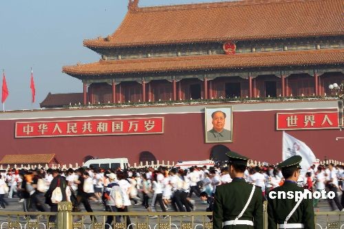 10月19日,2008北京國際馬拉松賽在北京天安門廣場鳴槍。中新社發 盛佳鵬 攝