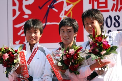 在女子全程馬拉松比賽中,中國選手白雪奪得冠軍,另兩名中國選手陳榮和小將張瑩瑩分獲二、三名。中新社發 盛佳鵬 攝