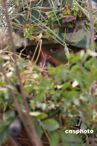 10月19日,濟南軍區偵察兵進行比武考核,偵察隊員們攀山越嶺行軍50公里,主要完成了橫越山澗、戰場救護、破襲戰斗三項課目考核,優秀率90%。動態考核結束后將進行總結表彰,評出軍區偵察兵精武標兵。偵察隊員負戰斗裝具60米山澗。最好成績38秒。中新社發 崔成俊 攝