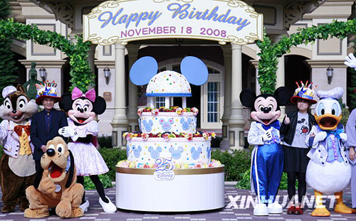 11月18日,東京迪斯尼樂園為恰逢80壽誕的動畫明星米老鼠米奇舉行生日會。米奇的女朋友米妮、唐老鴨等迪斯尼明星和10名來自日本各地的與米奇同一天生日的嘉賓參加了生日會,他們為米奇帶來了歡樂的生日歌及一個高約2米的巨大蛋糕。