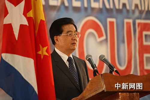 中國國家主席胡錦濤,十八日在古巴國務委員會主席勞爾·卡斯特羅的陪同下,來到古巴哈瓦那大學塔拉拉分校,看望中國留學生。
