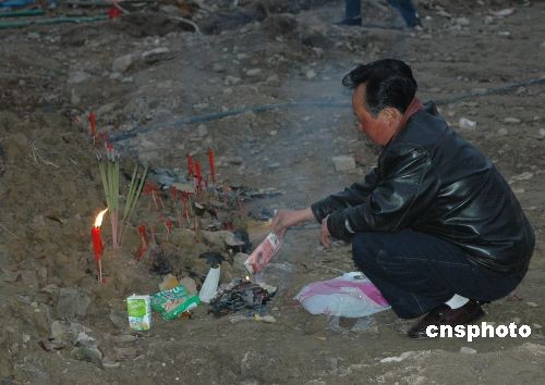 在四川雅江縣務(wù)工的楊先生,每月都會到北川中學(xué)的廢墟前祭奠在“512”大地震遇難的女兒。圖為11月21日,楊先生星夜兼程從雅江趕赴北川,為17歲的女兒燒去思念。中新社發(fā) 肖龍聯(lián) 攝