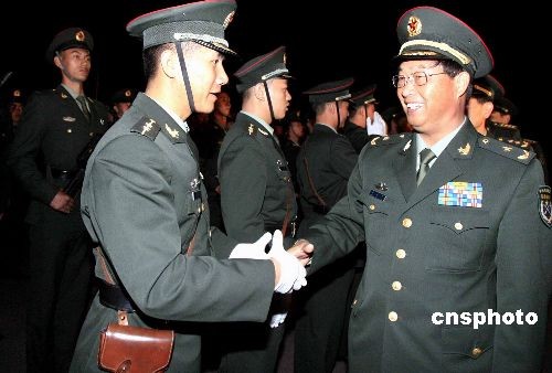 十一月二十五日,解放軍駐香港部隊進行第十一次建制單位輪換行動。二十五日凌晨,駐軍司令員張仕波少將、政治委員劉良凱中將來到新圍軍營,出席了陸軍部隊輪換交接儀式。中新社發 張勤 攝