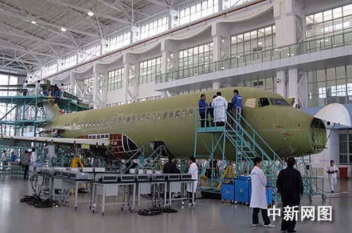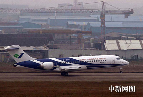 中國首架自主研制、擁有完全自主知識產權的新型渦扇支線客機ARJ21-700飛機28日首飛。當日12時20分許,飛機經過滑行后,輕盈騰空而起,經過約一個小時的飛行,飛機順利返航著陸。中新社記者 孫自法 攝