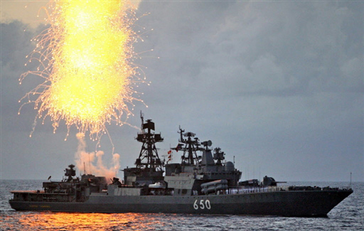 12月2日,在委內瑞拉境內的加勒比海域,俄羅斯“恰巴年科海軍上將”號大型反潛艦與“彼得大帝”號核動力導彈巡洋艦參加委內瑞拉和俄羅斯舉行的海上聯合軍演。 委俄兩國于12月1日至3日在加勒比海舉行代號為“委俄2008”的聯合軍事演習。