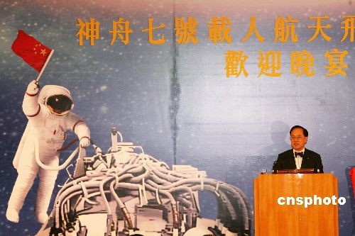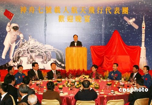 十二月五日晚,香港特區政府在香港會議展覽中心舉行晚宴,歡迎“神舟七號”載人航天飛行代表團一行。中新社發 武仲林 攝