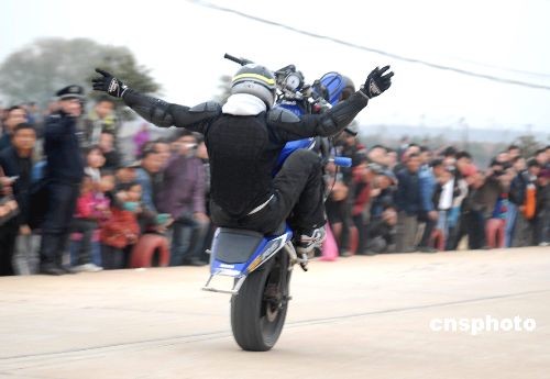 圖:好萊塢史東特技車隊(duì)為武漢汽摩賽助興(2)