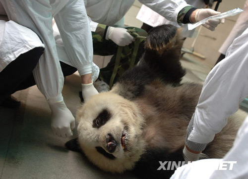 12月20日,醫務人員對大熊貓“小明”實施全身麻醉后進行檢查。新華社記者 陳鋼 攝