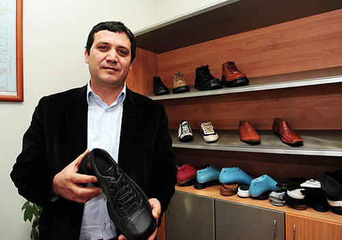 12月22日,在土耳其伊斯坦布爾,巴伊丹制鞋廠老板拉馬贊·巴伊丹展示自己鞋廠生產的一款皮鞋。