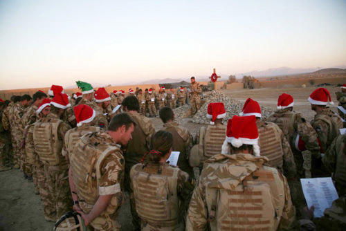 阿富汗哈爾門德省的黃昏,落日掛在灸烤了一天的大地上。英國海軍陸戰隊的士兵們戴著圣誕帽,集結在戰爭紀念碑前,唱起圣誕節頌歌。