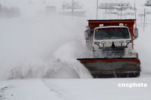 新疆哈密一輛道路清障車在清除道路積雪。 中新社發(fā) 蔡增樂(lè) 攝