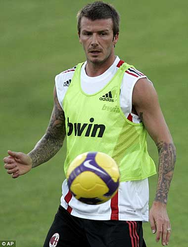 圖:貝克漢姆球場(chǎng)上炫耀新紋身(2)