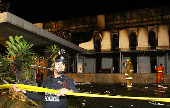 警察在泰國首都曼谷發(fā)生火災(zāi)的賽提卡夜總會警戒。