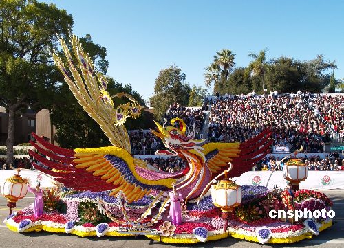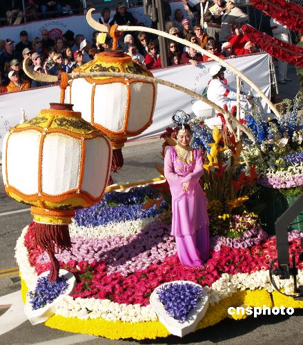 臺灣中華航空公司的玫瑰花車“火鳳凰”在美國洛杉磯第120屆玫瑰花車游行勇奪大獎。該主題花車名為“臺灣燈會”,花車以中國燈籠和“仙女下凡”為元素,奪人眼球。中新社發 盧威 攝