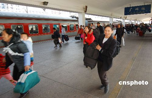 廣州火車站人潮初現,進站的返鄉旅客十分興奮。中新社發 柯小軍 攝