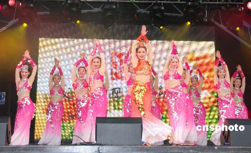 當地時間2月1日,英國倫敦盛大的中國新年慶典在特拉法加廣場開幕,中國國務院僑辦組織的“文化中國·四海同春”藝術家赴現場演出助陣。圖為昆明市民族歌舞劇院正在演出具有少數民族風情的歌舞節目。