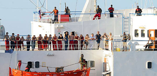 圖:索馬里海盜接受贖金后釋放烏克蘭軍火船(2)