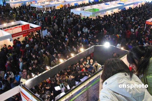 2月7日,一年一度的北京最大規模招聘盛會——“北京‘共創未來’大型人才招聘會”在中國國際展覽中心舉行。本次大會由北京多家人才聯合主辦,設立展位近千個,展會開放四個展館,2號館為IT、電子、通訊專館,3號館為建筑房地產、現代制造業、生物醫藥及廣告傳媒專館,4號館、8B號館為綜合招聘館。在京10萬高校畢業生前往應聘。