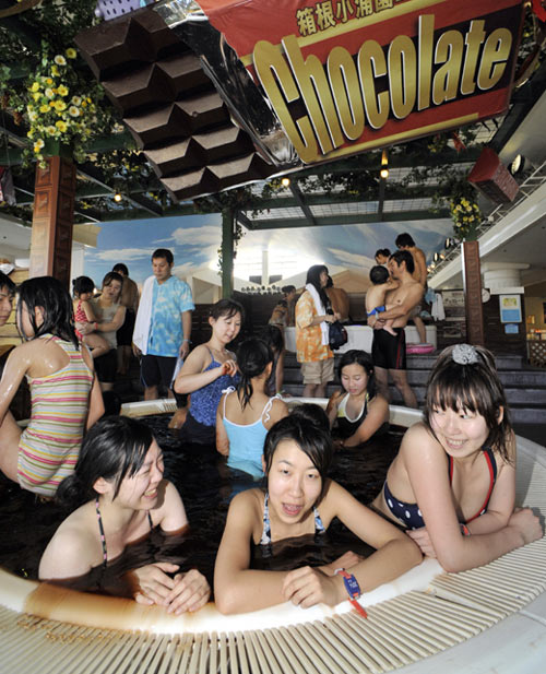 2月8日,游客們在日本神奈川縣享受奇特的“巧克力浴”,以此慶祝即將到來的情人節。