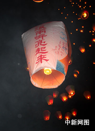 1月9日晚,由臺灣“交通部”觀光局和臺北縣政府主辦的“天燈讓兩岸亮起來”慶元宵活動在臺灣天燈之鄉平溪舉行。記者 陳立宇 攝