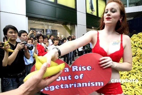 組圖:靚麗女郎街頭派發(fā)香蕉提倡素食文化