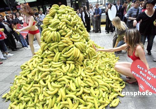 組圖:靚麗女郎街頭派發香蕉提倡素食文化(3)