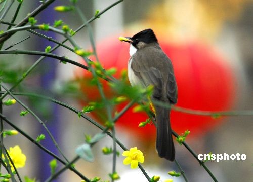 2009年2月21日,貴陽(yáng)的春天陽(yáng)光明媚,小鳥(niǎo)在春天里享受春的氣息。中新社發(fā) 張?zhí)炝?攝