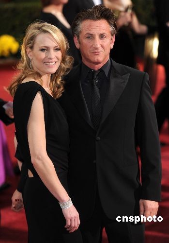 本屆影帝最大熱門肖恩·潘攜妻子羅賓·懷特一同走過紅地毯。中新社發 張煒 攝