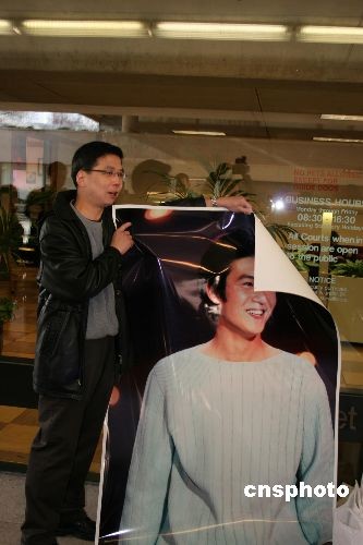 轟動一時的香港“艷照門”男主角陳冠希23日首次在溫哥華出庭作證,一名溫哥華男子在法院門口打出大幅海報,自稱是陳冠希的“粉絲”。中新社發(fā) 呂振亞 攝
