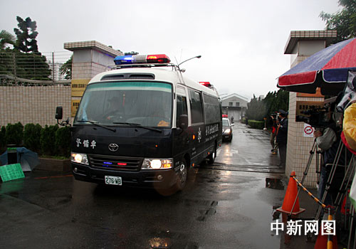 圖為今天早上八時三十五分許,押著陳水扁的囚車開出臺北看守所,前往地院出庭。 中新社記者 陳立宇 攝