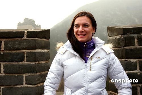 3月4日,撐桿跳高女皇、俄羅斯名將葉琳娜·伊辛巴耶娃游覽北京居庸關(guān)長(zhǎng)城。伊辛巴耶娃此次來華是與中國某著名體育品牌公司簽約,成為其新的產(chǎn)品代言人。中新社發(fā) 富田 攝