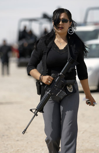 墨西哥監獄發生騷亂,防暴警察緊急增援,一位穿著時尚墨西哥女警持槍進入監獄。