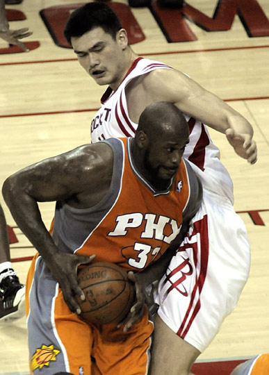 中新網(wǎng)3月7日電 北京時(shí)間7日上午,休斯頓火箭隊(duì)回到主場(chǎng)迎戰(zhàn)菲尼克斯太陽(yáng)隊(duì)。經(jīng)過(guò)一番激戰(zhàn),火箭隊(duì)最終以116-112擊敗太陽(yáng)隊(duì),取得主場(chǎng)11連勝。姚明全場(chǎng)得到15分、13個(gè)籃板、6次助攻、2次搶斷和2次蓋帽,而“大鯊魚(yú)”奧尼爾只得到17分和5個(gè)籃板。
