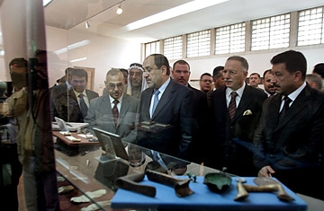 目前狀況:博物館于今年二月份重新開館,但是伊拉克的官員們只尋回了6000多個丟失文物,目前,這批被追回文物被安置在博物館的一個特殊儲藏館內。伊拉克當局一直在進行追討,一件一件的追回著丟失的文物,他們努力的保護著伊拉克寶貴的文化寶藏,以防止文物在黑市上被交易。