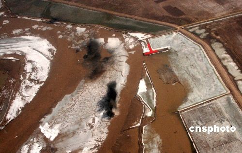 積冰區濃煙滾滾,冰花四濺。中新社發 尤中原 攝