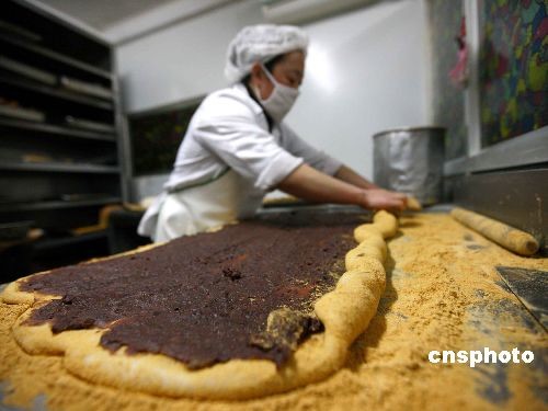圖為面點廚師正在加緊制作。中新社發 富田 攝