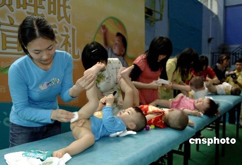 3月21日是世界睡眠日,在“科學管理睡眠”的號召下,廣州舉行了金質睡眠宣誓活動全國巡展第一站,上千名小寶寶在爸爸媽媽們的帶領下宣誓。除了熱情洋溢的寶寶宣誓禮外,還舉行了媽媽為寶寶換尿布比賽。中新社發 劉衛勇 攝