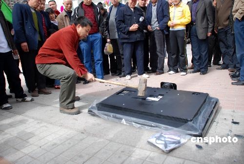組圖:新疆一消費者街頭怒砸彩電(2)