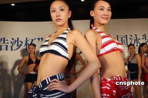 3月26日,“浩沙杯”第六屆中國泳裝設計大賽新聞發布會在北京飯店隆重舉行。年輕的選手們以“樂享水”為題,展示精妙的新創意。中新社發 錢興強 攝