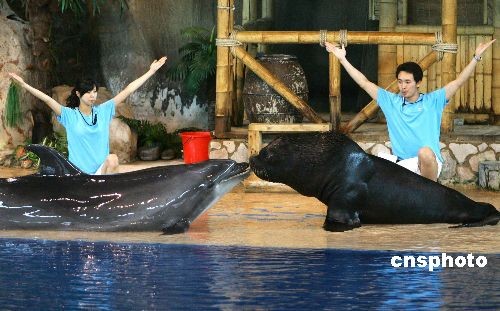 圖:北京海洋館首創海獅海豚親吻節目