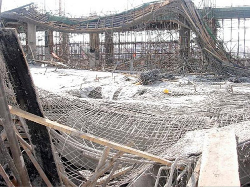 4月7日下午6:30,正在新建的朔州火車站站房工程,在一層頂板現澆混凝土澆注過程中,發生頂板支撐局部垮塌。7名工人受傷,其中4名輕微骨折,3名皮膚擦傷。