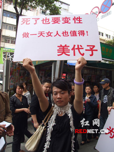 前不久申清清在接受記者采訪時曾經表示,曾在江西舉過關于變性的牌子,并且在江西有醫院愿幫助他完成手術,但具體事宜仍未敲定。既然馬上要做手術了,為何還要“故技重施”呢?申清清說,此次再來長沙舉牌,一方面希望通過“現身表演”,呼吁社會能夠容忍并接受變性人的存在,另一方面,希望能有更多的醫院能夠關注他和美代子,并能夠真切地表態,可以幫助他們實現“女人夢”。