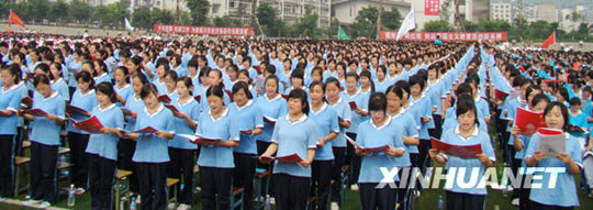 6月25日,在四川鄰水縣鄰水實(shí)驗(yàn)中學(xué)體育場(chǎng),來自眾多學(xué)校的上萬名師生齊聲誦讀國(guó)學(xué)經(jīng)典。
