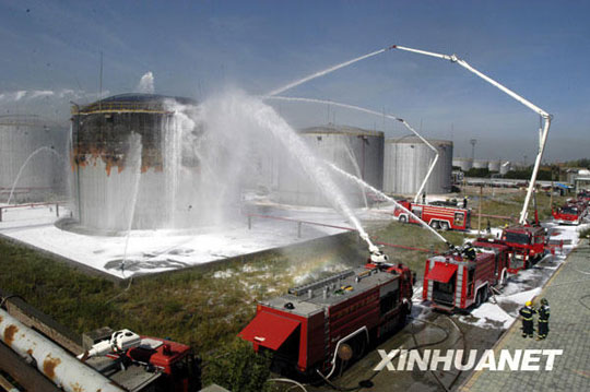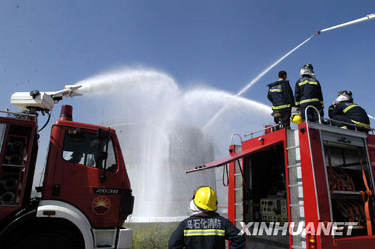 7月12日,消防官兵正在現場滅火。據中石油烏魯木齊石化分公司(以下簡稱烏石化)黨委書記劉繼遠介紹,烏石化輕油罐著火已經撲滅,現場無人員傷亡,經武警、特警現場檢查,基本排除人為原因。目前,烏石化其他所有裝置均安全正常生產。