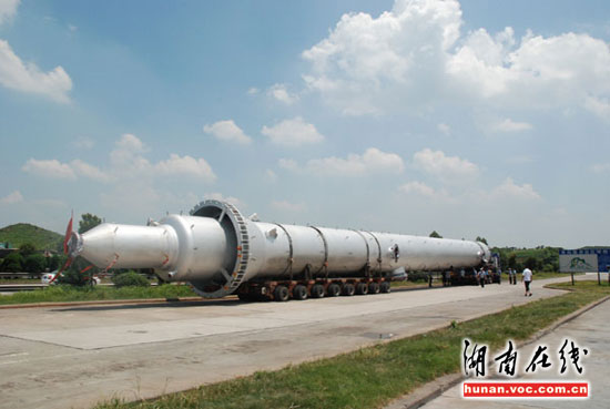 14日下午,一輛長(zhǎng)大貨車(chē),馱著161.58噸重的巨型“導(dǎo)彈”途徑京珠高速潭耒路段時(shí),被耒陽(yáng)高速交警查獲。經(jīng)測(cè)量,該車(chē)總長(zhǎng)54米,其中所載“導(dǎo)彈”長(zhǎng)47米,相當(dāng)于三節(jié)火車(chē)車(chē)皮那么長(zhǎng)(單節(jié)火車(chē)車(chē)皮長(zhǎng)18米),屬?lài)?yán)重超限,且駕駛員無(wú)法提供有效的超限通行證件。