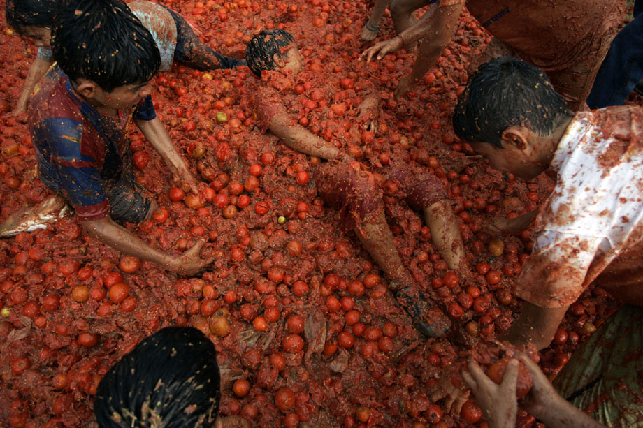 2009年6月14日,哥倫比亞在首都波哥大東北部的蘇塔馬錢小鎮舉行一年一度的“番茄狂歡節”,互不相識的人們互相投擲番茄慶祝節日。