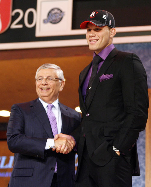 NBA總裁大衛·斯特恩祝賀獲得“狀元秀”的布雷克·格里芬。
